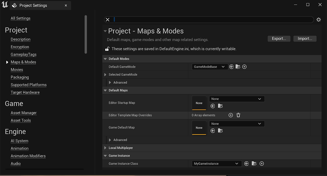 맨 밑에 GameInstance를 바꿔주면 된다.