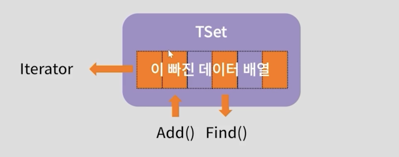 TSet의 가장 중요한 특징 중 하나는 빈 공간 Invalid한 공간이 생길 수 있다는 점이다.