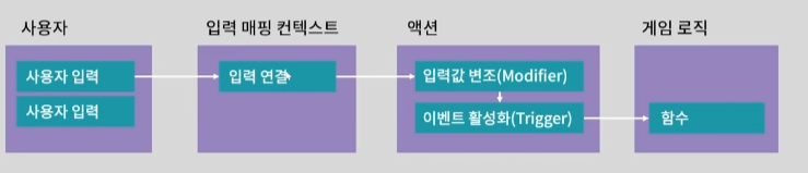 액션에 사용자의 입력을 매핑하는 느낌? 들어온 입력값에 대해서 들어온 입력값을 기반으로 이벤트를 활성화 하면 그 이벤트와 연결된 함수를 호출하는 것이다.