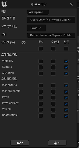 - 공격판정 구현을 위한 물리 트레이스 채널 및 프로필 설정