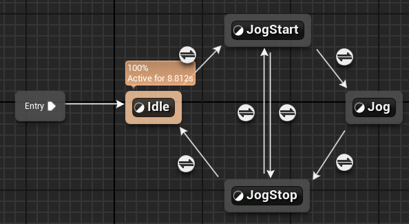 - JogStop > Idle : JogStop 애니메이션이 끝나면 자동으로 넘어감