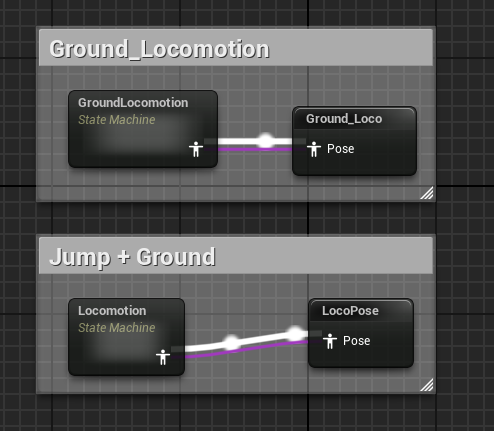 땅에 자연스럽게 착지하기 위해 기본 베이스로 Ground_Loco를 설정하고 Jump후 땅에 도착했을 때 모션(살짝 앉았다 일어나는)을 Additive해서 섞어주면 된다.