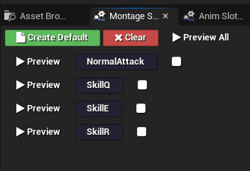 그에 맞게 이름을 지어주고 각 모션에 할 것을 구분해서 애니메이션 몽타주를 설정해준다.