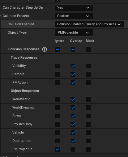 그리고 화살끼리의 충돌을 방지하기 위해 ObjectChannel을 하나 추가하고 그 경우는 Ignore 처리하자.