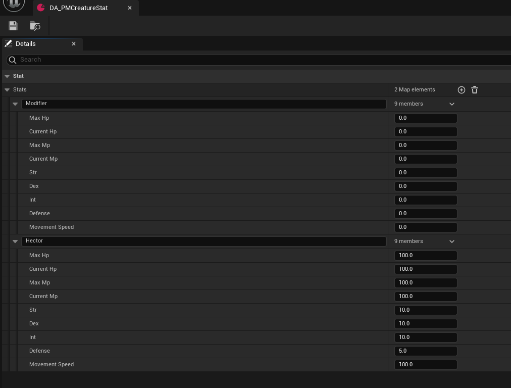 이제 우리는 단순히 데이터 에셋에서 Map에 데이터를 추가하기만 몬스터는 자동적으로 Stat이 초기화 될것이다.