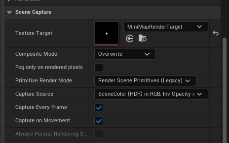 MiniMapCamera = CreateDefaultSubobject<USceneCaptureComponent2D>(TEXT("MinimapCapture"));