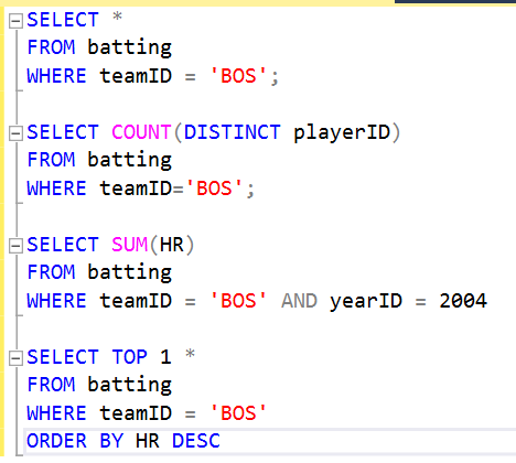 - teamID - 팀 명칭 , 'BOS' = 보스턴