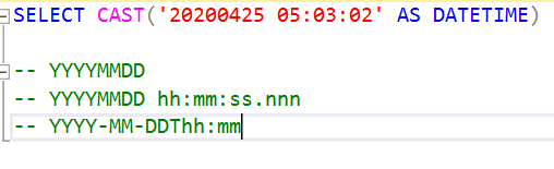 다음 양식을 통해 문자열을 DATETIME으로 캐스팅 할 수 있다.