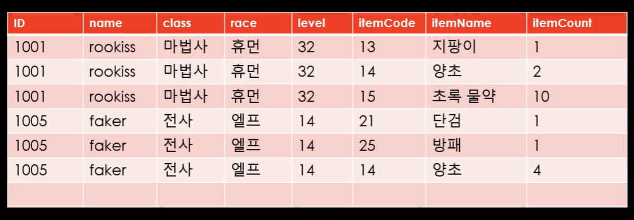 데이터베이스를 처음 만드는 사람의 공통된 문제는 데이터를 한 곳에 다 넣는 경우가 가장 많다.