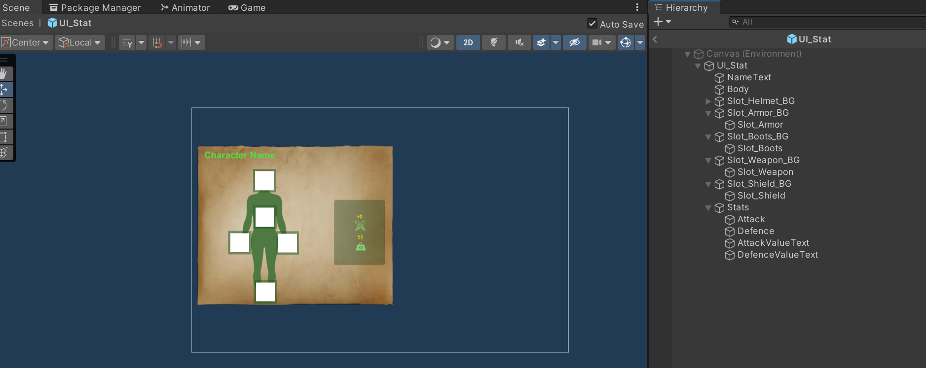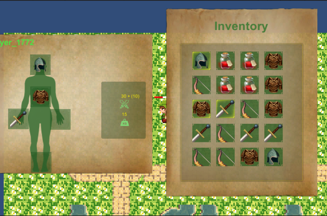 이제 인벤토리에 아이템이 쌓이게 되고 그 아이템을 가지고 실제로 착용해 스텟에 적용해보도록 하자.