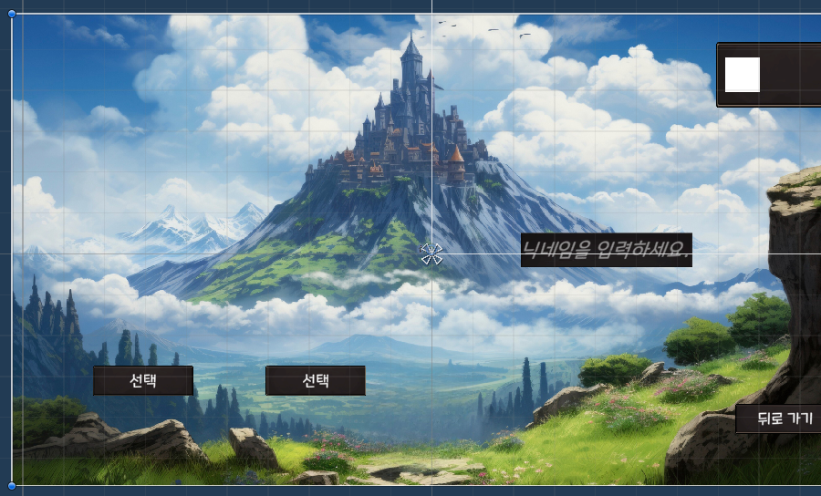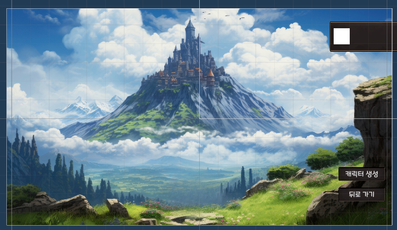 이렇게 캐릭터 선택창을 구현했다. 캐릭터 선택창에서 가운데에는 현재 가지고 있는 캐릭터들이 등장하게 될것이기에 비워뒀다.